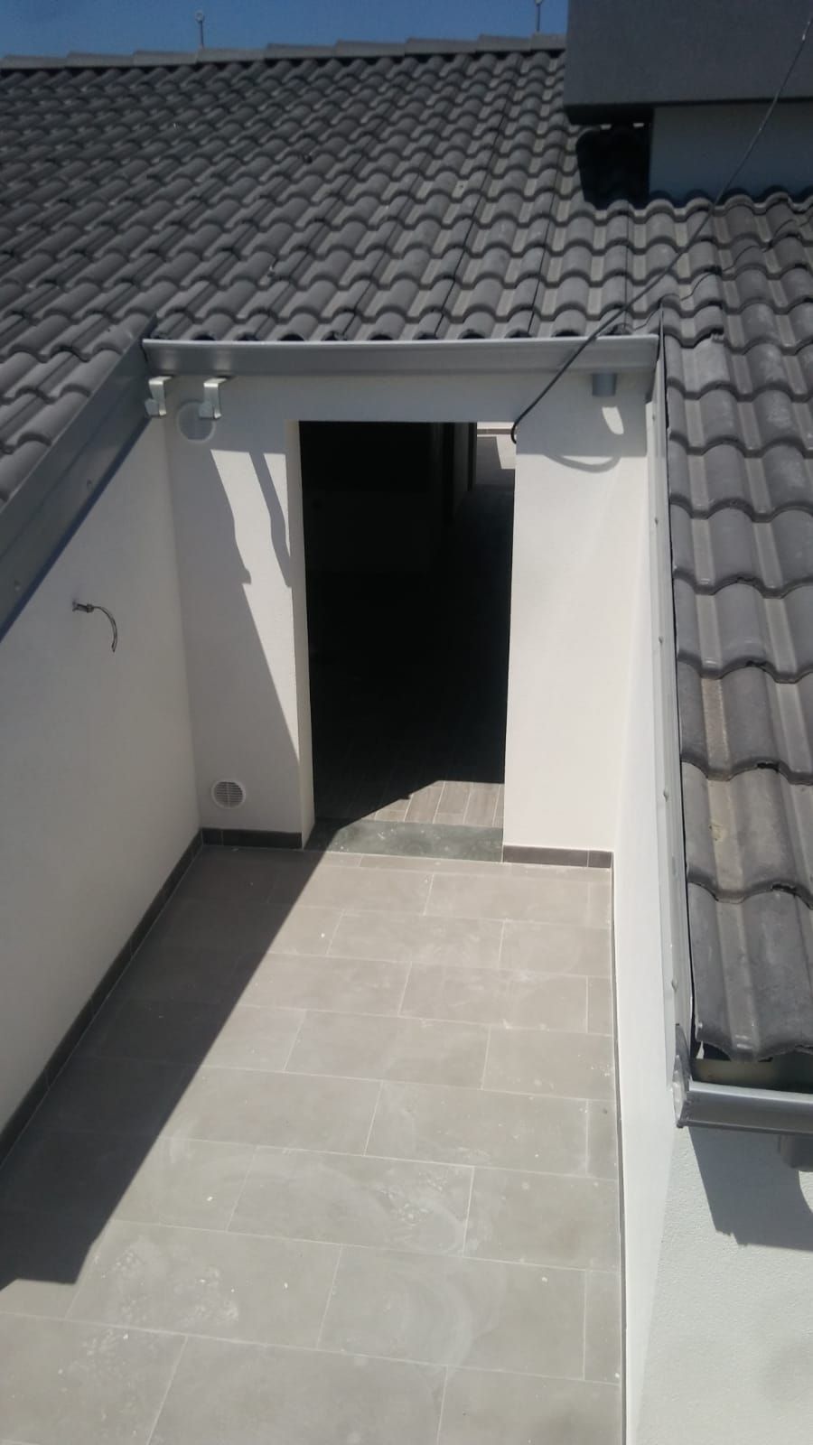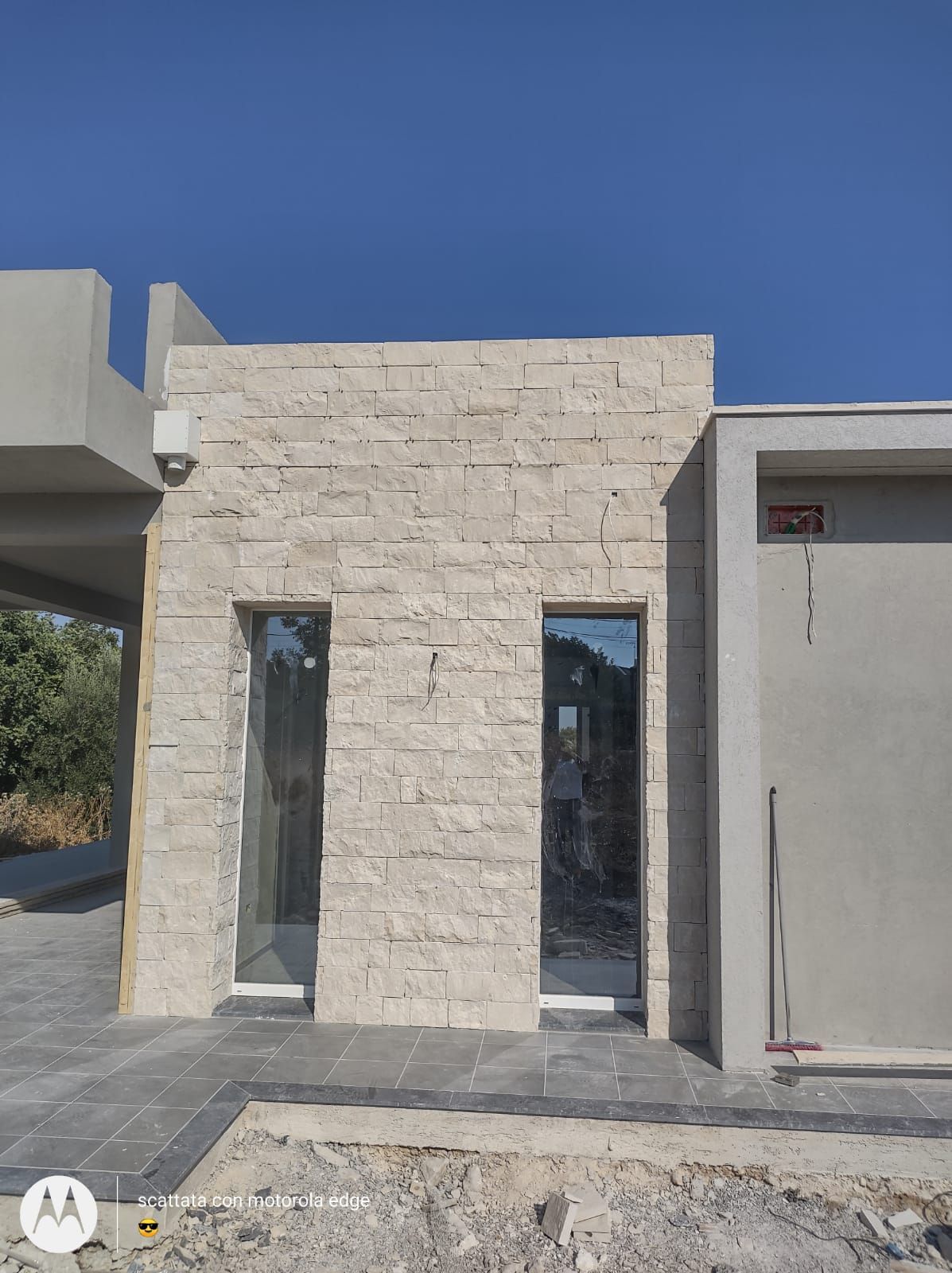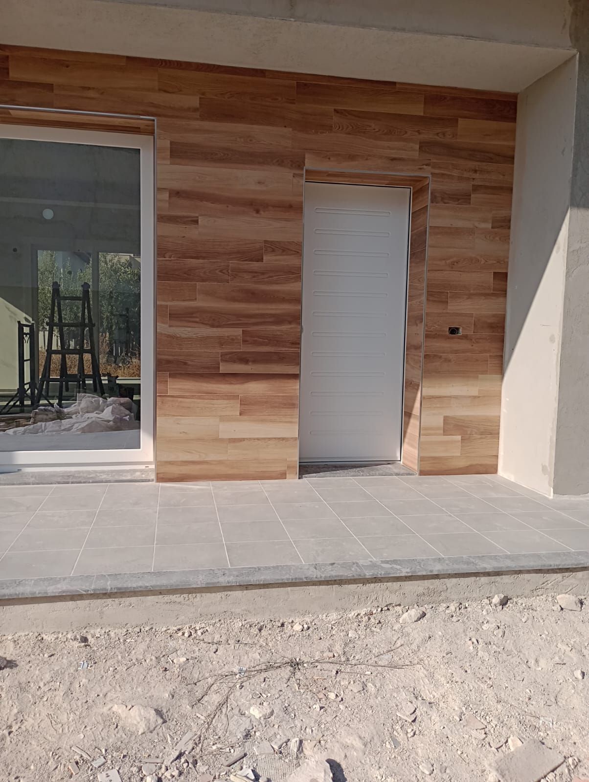 Costruzione adiacente alle quattro villette della gallery precedente. Ingresso indipendente sia pedonale che carrabile. Piscina e impianto fotovoltaico. Spazio sul davanti per parcheggiare e sul retro area predisposta per spazio barbecue.