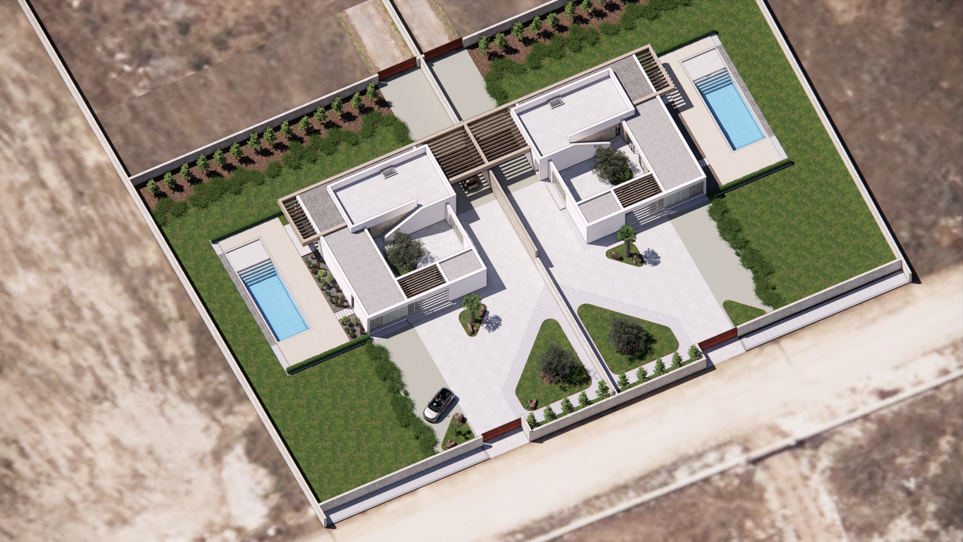 Due villete singole, una accanto all'altra. Ingresso pedonale e passo carrabile. Spazio verde accanto ad ogni villetta. Piscina. Spazio con veranda sul davanti. Impianto fotovoltaico e climatizzazione. Divisa su 2 livelli con terrazzo.